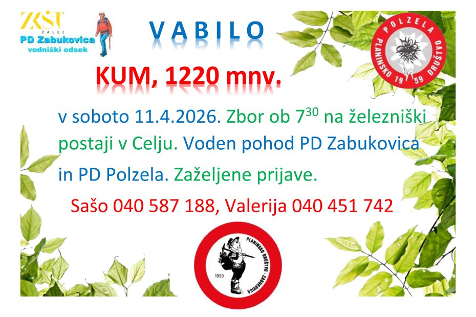 Z vlakom se bomo zapeljali do Zidanega Mostu od koder bomo nadaljevali peš. Najprej se bomo s pomočjo ročne nihajke »cicke« prepeljali na drugo stran Save, nadaljevali skozi Škratovo dolino in nazadnje skozi zaselek vikendov Ključevica prispeli na vrh Kuma od koder je v lepem vremenu čudovit razgled, vidi se vse do Triglava.