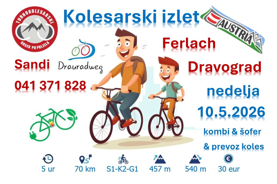 PRIJAVE: rezervacije do ponedeljka 4.5.2026, pri vodji izleta. V primeru odpovedi udeleženec poravna stroške ali priskrbi nadomestnega udeleženca.