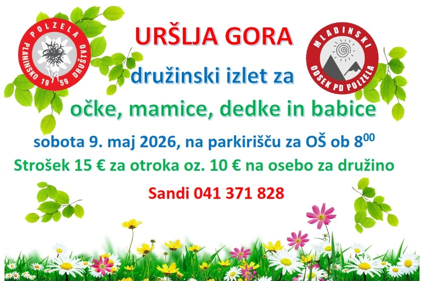 V soboto, 9. 5. 2026, ste Mladi planinci in starši vabljeni na zadnji načrtovan pohod v letošnjem šolskem letu. Pot nas bo vodila do koče na Uršlji gori.